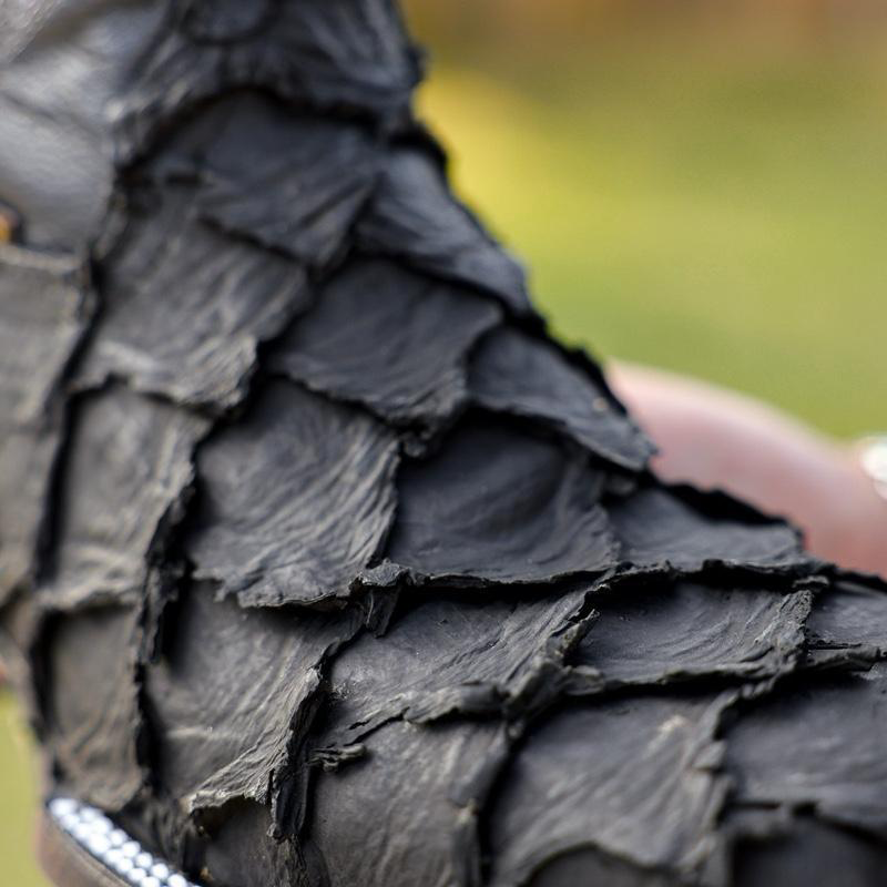 Matte Black Jumbo Pirarucu Leather Boots - Square Toe